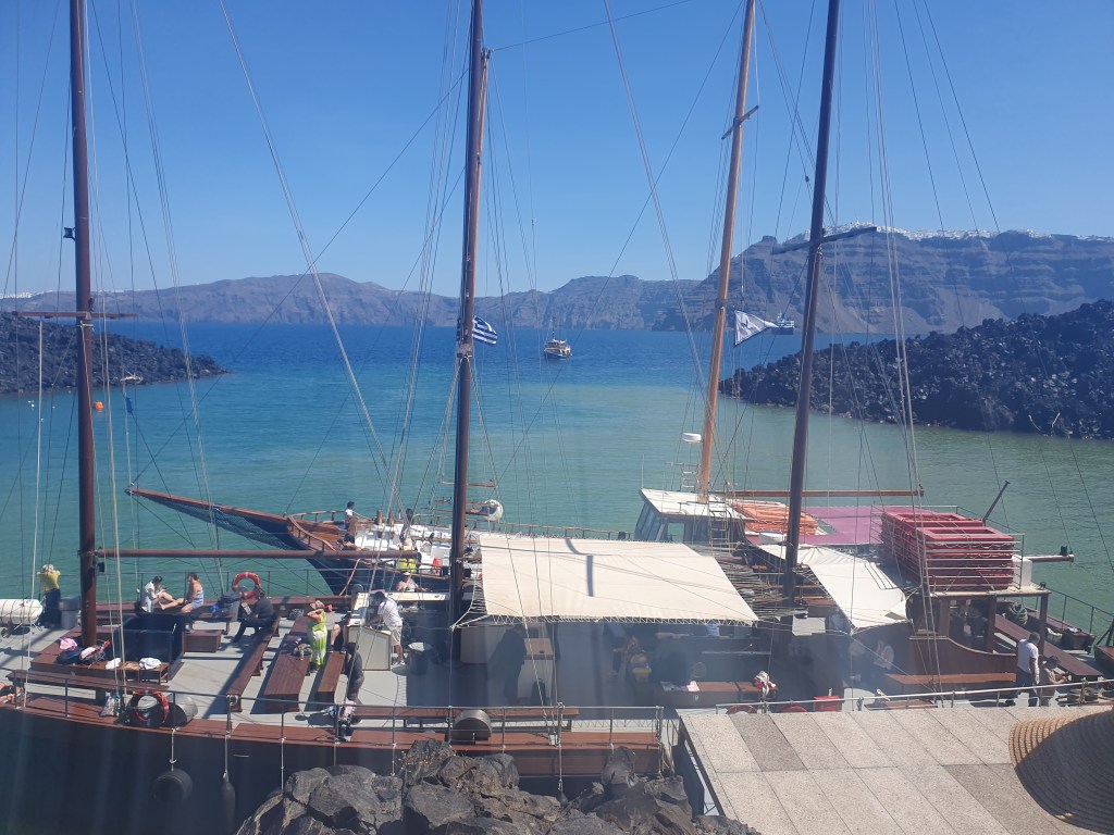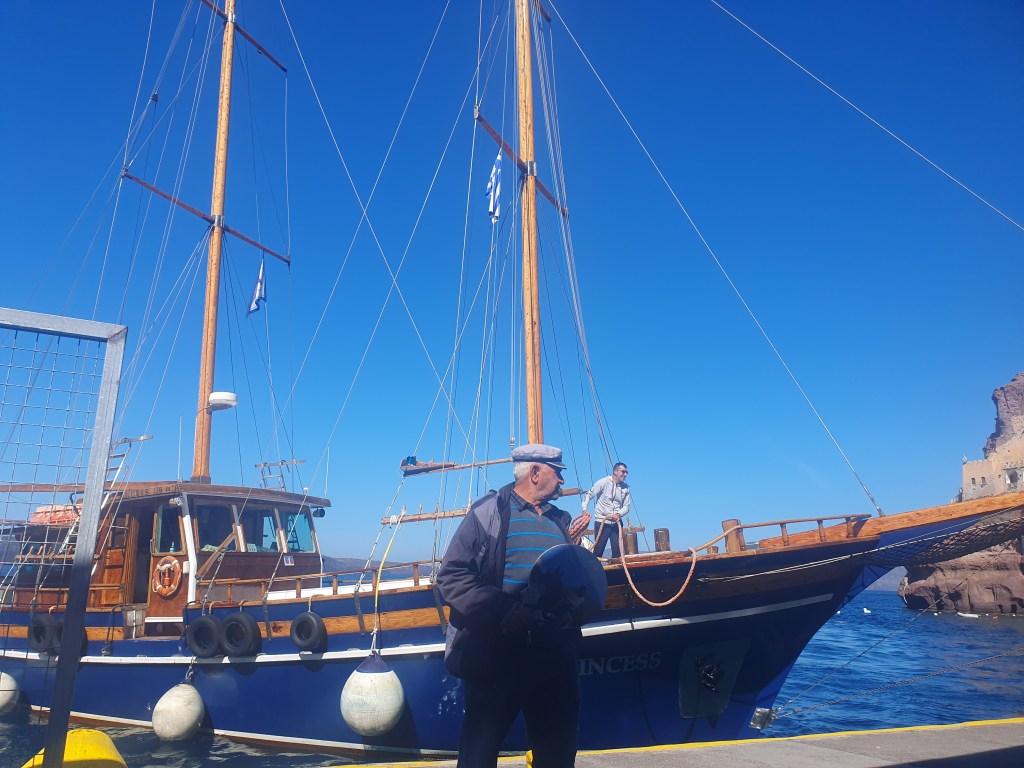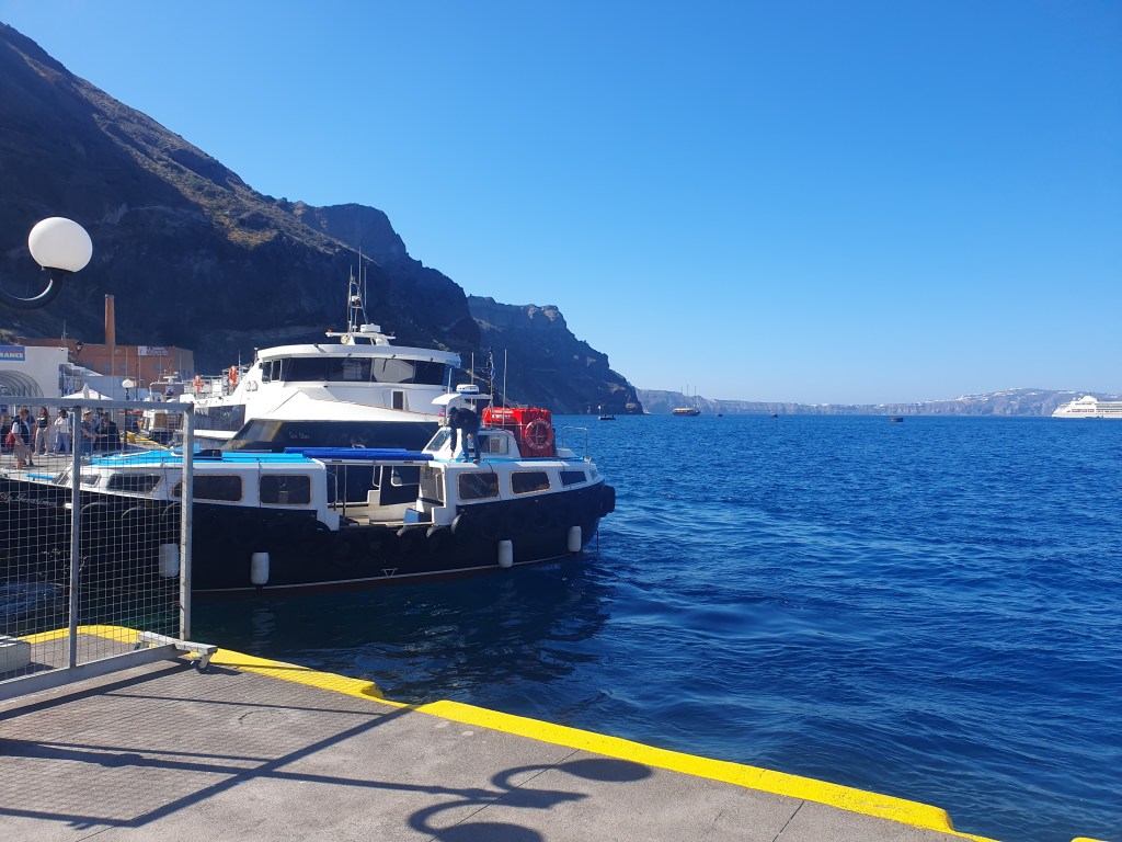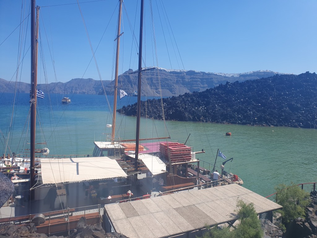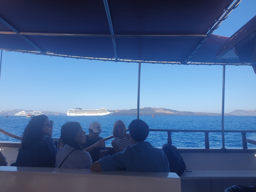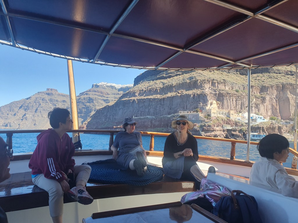 From the docks on the edge of Thera, we boarded and began our voyage, heading for some volcanic fun. It was here I made some friends with American travellers who had a fun dynamic with each other.