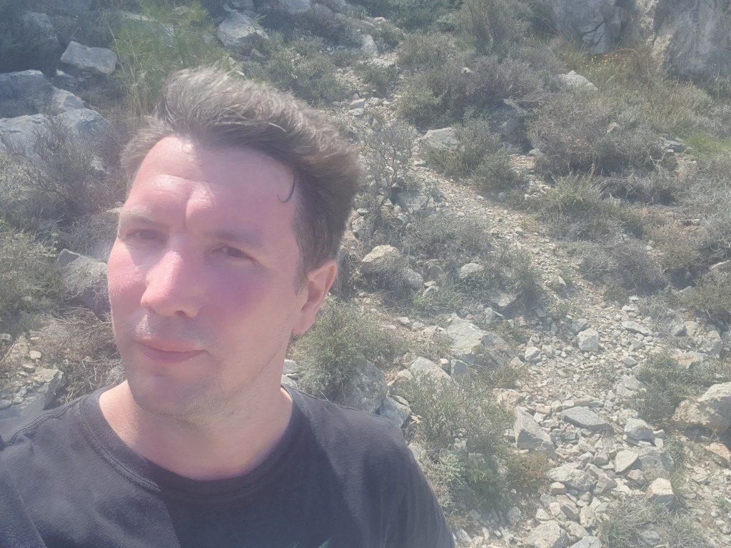 There was a pattern to it. Some rocks were jaggy, some rocks were slippy, others were great foot / hand holds. There were spiky plants, gravel slides, and pine trees. Now the pine trees provided excellent leverage to jump over greater gaps to the next safe-ish spot. Going from a Tomb Raider-esque location to then becoming Lara Croft was not quite the trajectory I’d considered for Sonic-themed travel, but hey, I’m adaptable. After an hour or so I managed to get back to the mountain road and then down I came. Let’s not have any more bright ideas about navigation.
